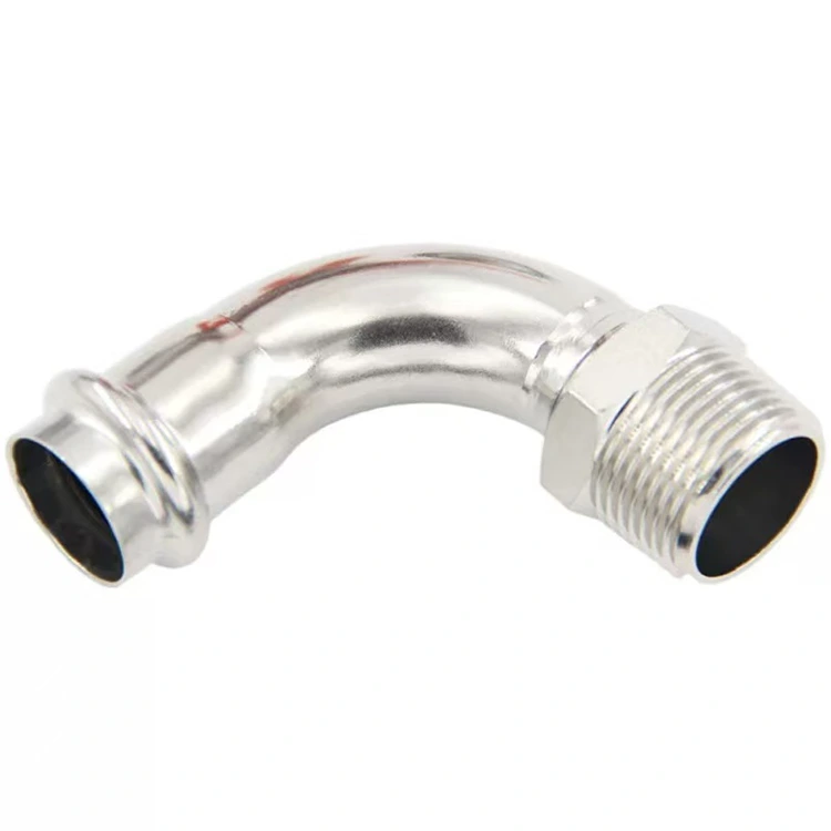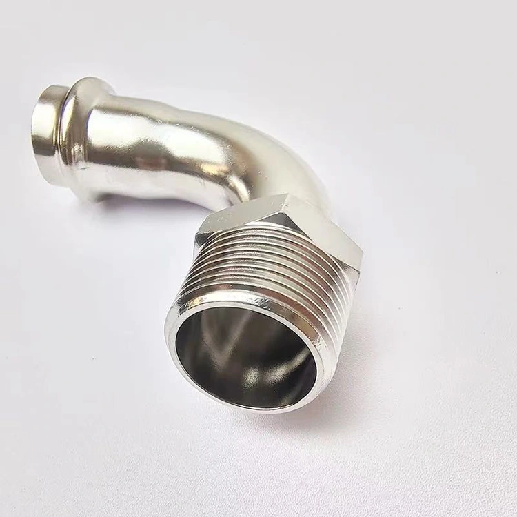"ഒരു ഹൈഡ്രോളിക് ഉപകരണം ഉപയോഗിച്ച് ഒരൊറ്റ പ്രവർത്തനത്തിൽ സ്റ്റെയിൻലെസ് സ്റ്റീൽ പൈപ്പിലേക്ക് ഒരറ്റം അമർത്തുന്ന ഒരു കൈമുട്ട് ഫിറ്റിംഗ്, മറ്റേ അറ്റം വിവിധ സ്ത്രീ ത്രെഡുകളുള്ള ഇൻ്റർഫേസുകളിലേക്ക് സ്ക്രൂ ചെയ്യാൻ ഉപയോഗിക്കുന്ന ഒരു നീണ്ടുനിൽക്കുന്ന പുരുഷ ത്രെഡ്" എന്ന് മനസ്സിലാക്കാം. ടെർമിനൽ കണക്ഷനുകൾക്കും സ്റ്റെയിൻലെസ് സ്റ്റീൽ പൈപ്പിംഗ് സിസ്റ്റങ്ങളിലെ ടേണുകൾക്കുമുള്ള ഒരു പ്രധാന പരിവർത്തന ഘടകമാണിത്.
